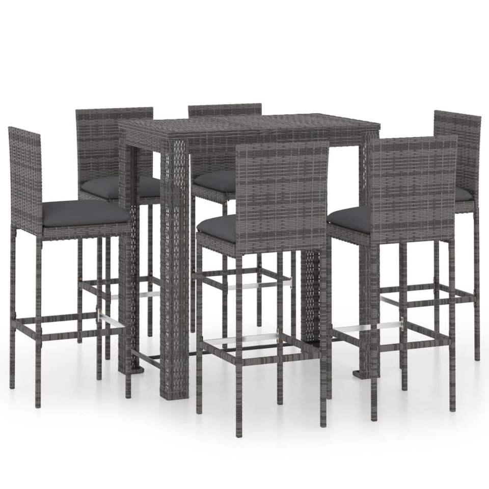 ชุดระเบียงโพลีหวายสีเทา7ชิ้นพร้อมหมอนอิงเฟอร์นิเจอร์กลางแจ้ง