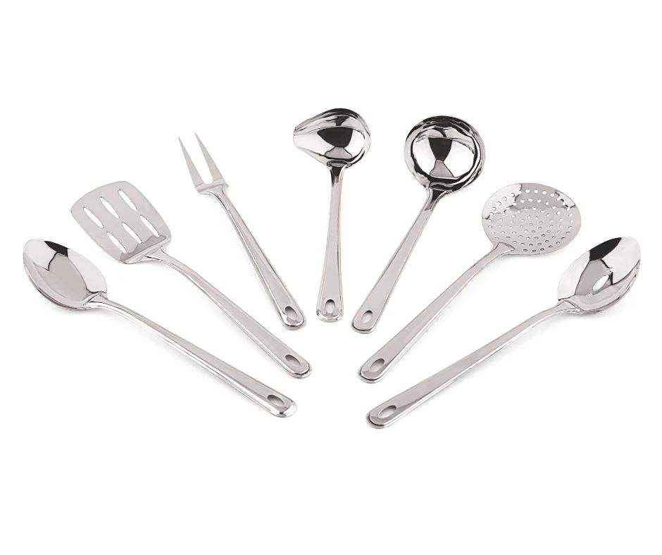 7-Piece Premium Stainless Steel Cooking Utensil Set Home Kitchen Mirror Polished Chrome Finish Including Ladle Turner Skimmer