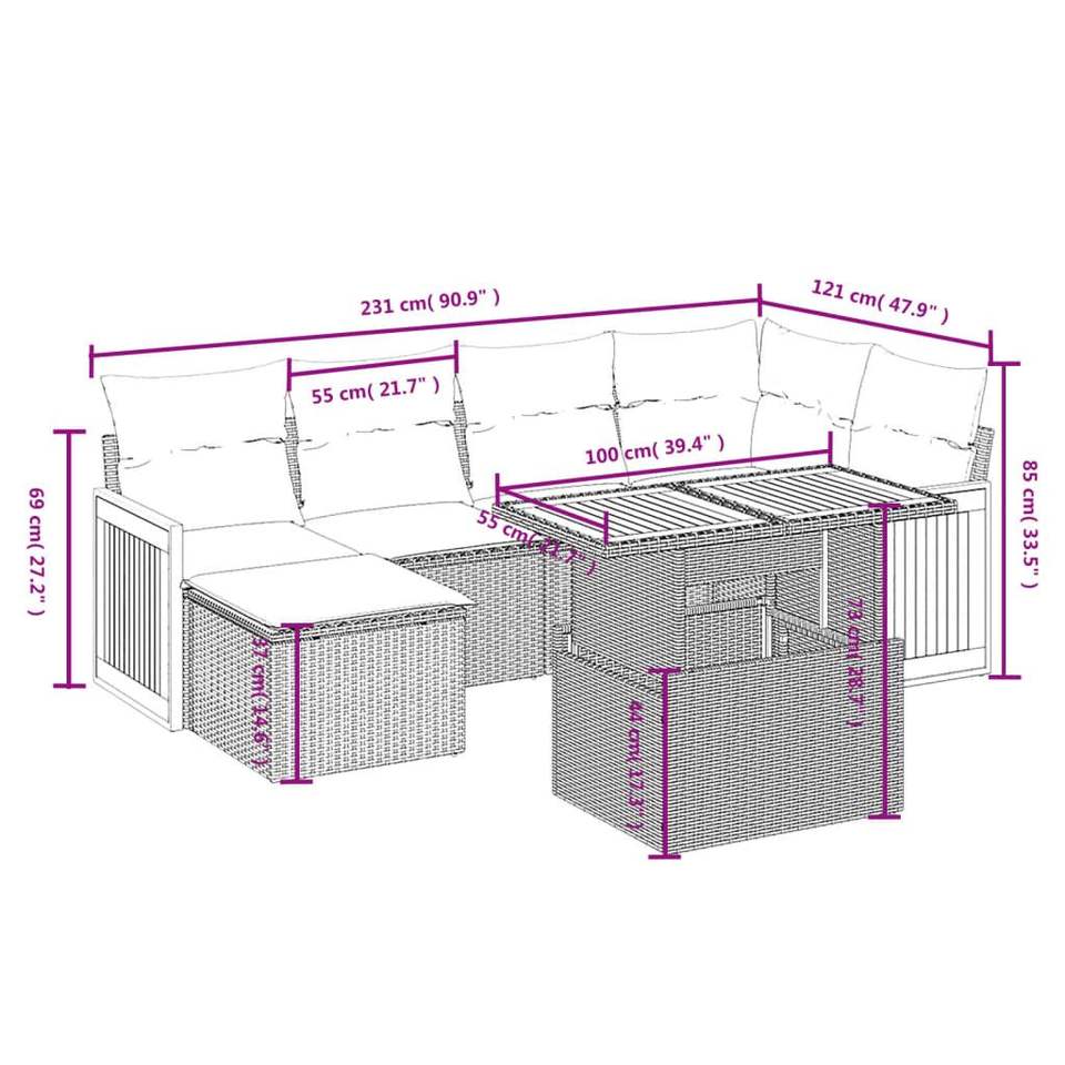 ชุดโซฟาสวนปรับได้ 7 ที่นั่ง สีเบจ ทำจากหวาย PE นั่งสบายและมีสไตล์