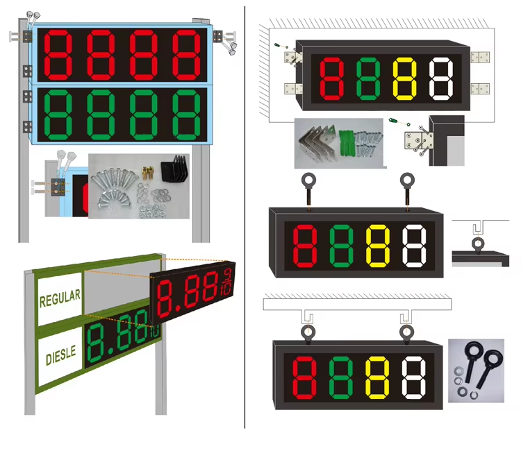 โมดูล LED 7 ส่วน ขนาด 12 นิ้ว 16 นิ้ว 18 นิ้ว 24 นิ้ว จอแสดงราคาแก๊สแบบดิจิตอล พร้อมรีโมทคอนโทรล RF ป้ายแสดงราคา