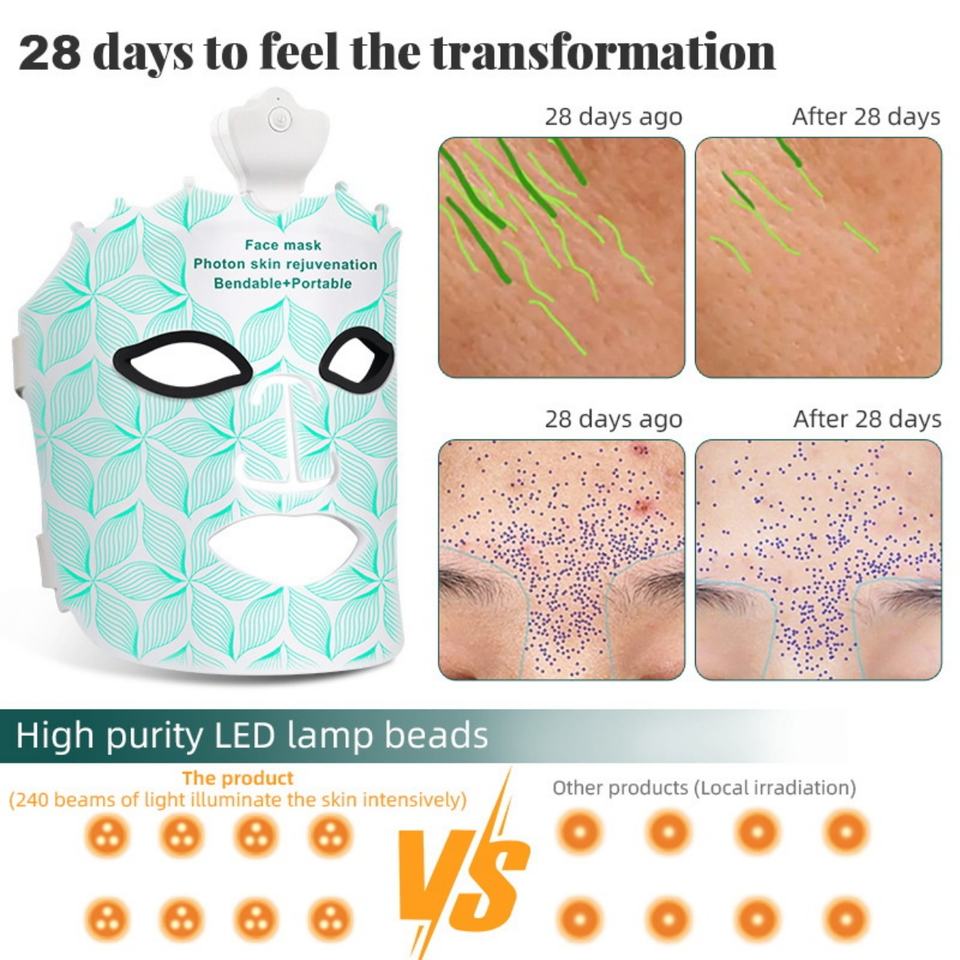 หน้ากากซิลิโคน LED อินฟราเรด 7 ความยาวคลื่น สำหรับการบำบัดด้วยแสงสีแดงด้วยโฟตอน เพื่อการดูแลผิวและทรีตเมนต์ความงาม