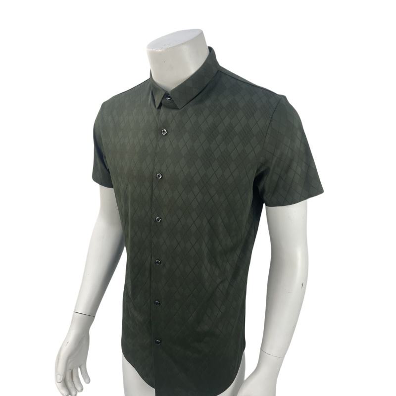 เสื้อโปโลลาย25% ผ้าไนลอนสแปนเด็กซ์75% 7กระดุมเสื้อเข้ารูปสำหรับนักธุรกิจ