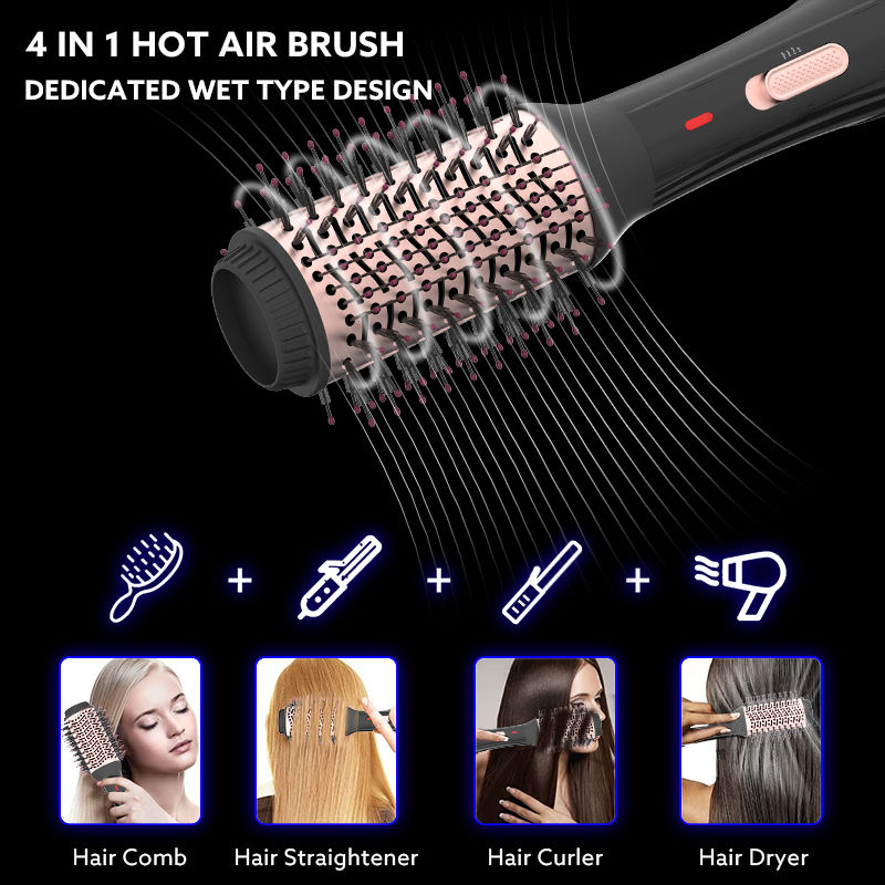 ไดร์เป่าผมเซรามิกเคลือบ 7-in-1 พร้อมมอเตอร์ไอออนิก DC แปรงลมร้อน ปลั๊กแบบ EU เครื่องจัดแต่งทรงผมไฟฟ้า อินฟราเรดให้ความร้อนเร็ว 3 ระดับความเร็ว สำหรับใช้ในร้านเสริมสวย