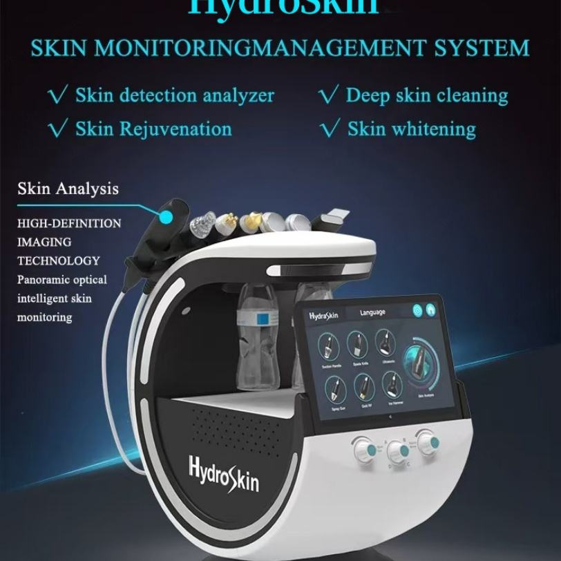 เครื่องพ่นออกซิเจนไฮโดรเดอร์มาเบรชั่นน้ำแข็งสีฟ้าอัจฉริยะ7-in-1เครื่องลอกผิวด้วยน้ำสำหรับการวิเคราะห์ผิวหน้า