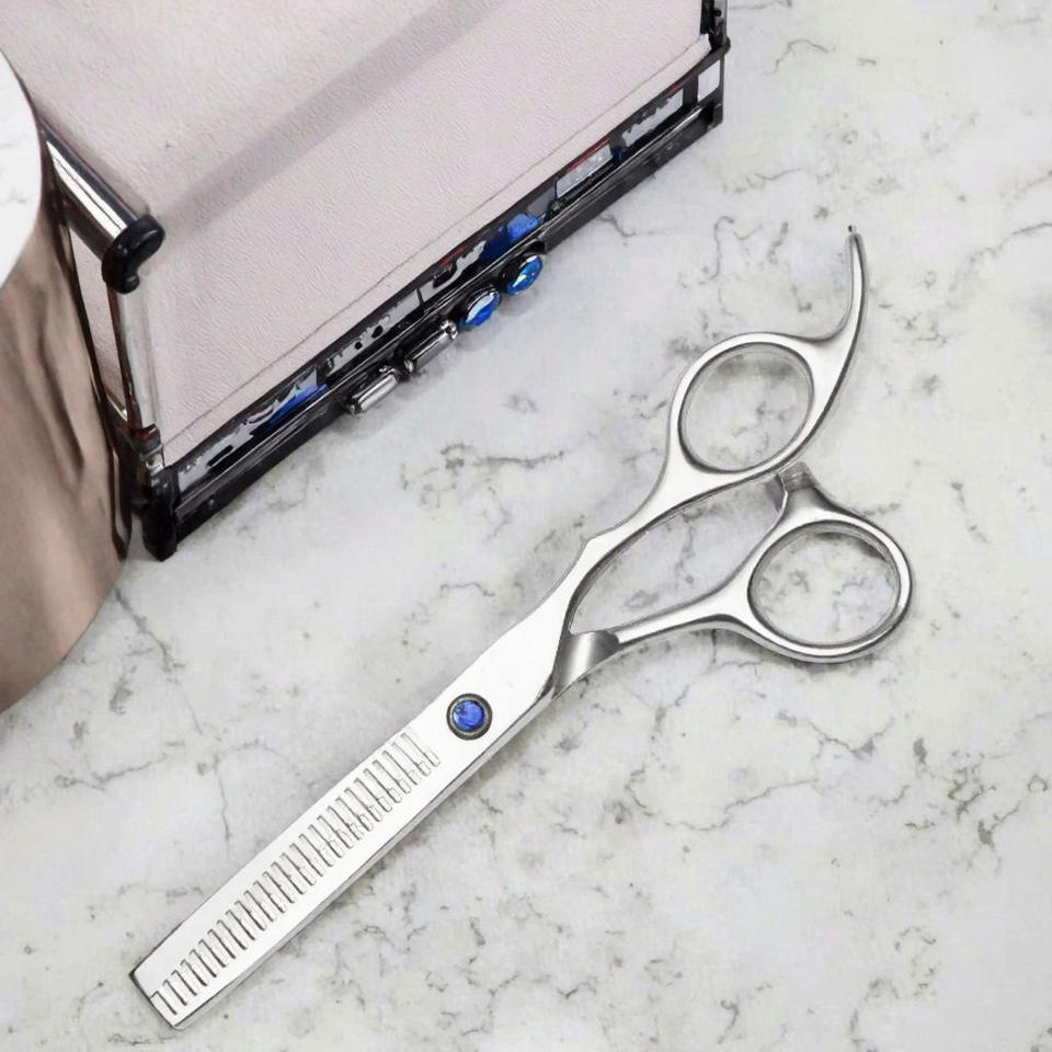 กรรไกรตัดผมสแตนเลสตรงขนาด 7 นิ้ว 6CR13 สำหรับคนถนัดขวา อุปกรณ์ทำผมในครัวเรือน กรรไกรตัดผมสำหรับช่างตัดผม