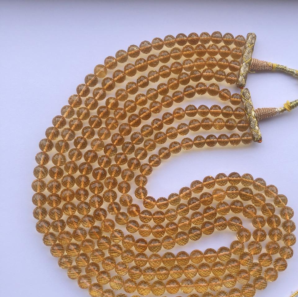 Natural Citrine Faceted Round Ball Beaded Gemstone Necklace