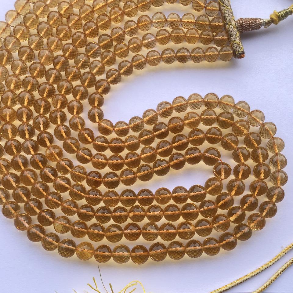 ธรรมชาติ Citrine Faceted Round Ball ลูกปัดอัญมณีสร้อยคอ