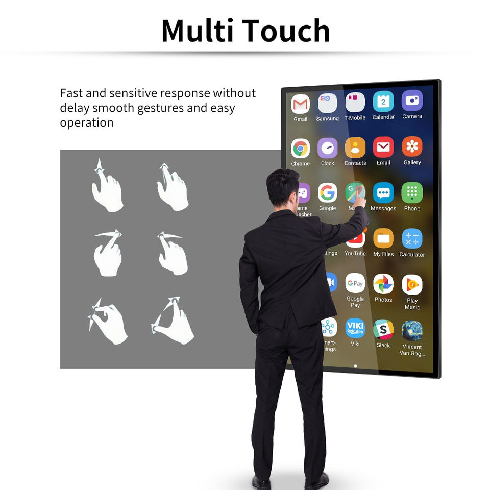 จอ LCD ติดผนังในร่มขนาดใหญ่70 75 85 86 98 100 110นิ้วตู้มัลติมีเดียพร้อมจอแสดงผลแนวนอนหรือแนวตั้ง