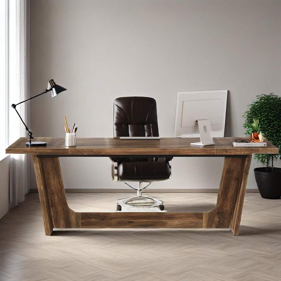 โต๊ะทำงานไม้เนื้อแข็งขนาดใหญ่ 70.87 นิ้ว พร้อมฐานตั้ง สำหรับสำนักงานที่บ้าน โต๊ะเขียนหนังสืออุตสาหกรรม โต๊ะคอมพิวเตอร์สำหรับสำนักงานที่บ้าน