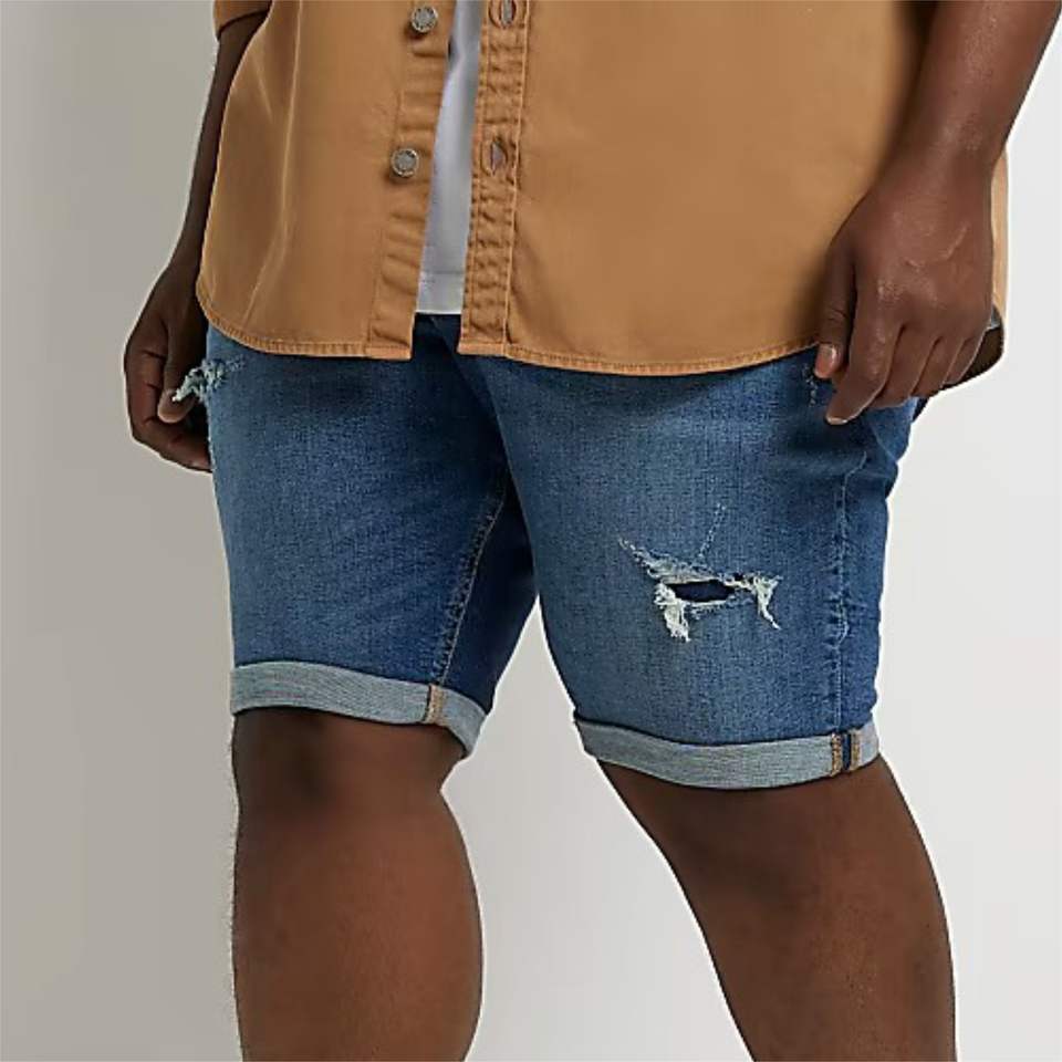 ผ้าฝ้าย70% 2% อีลาสเทน28% โพลีเอสเตอร์ผอมพอดีผ้ายีนส์เปิดรอบเข็มขัดลูปครามผอมพอดีกางเกงยีนส์กางเกงขาสั้น