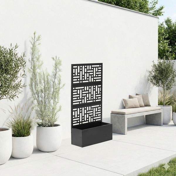 70-Inch Height Metal Garden Bed with Trellis Planter Box for Climbing Plants & Vegetables Fence Trellis & Gate