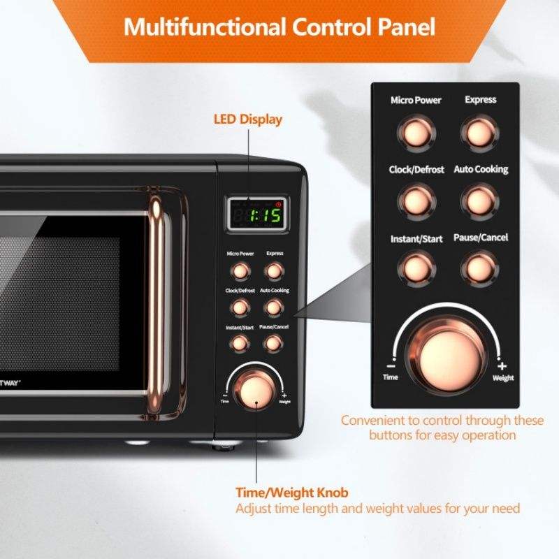 เตาไมโครเวฟแบบตั้งโต๊ะ 700W สไตล์เรโทร พร้อม 5 ระดับกำลังไมโครเวฟ และฟังก์ชั่นปรุงอาหารอัตโนมัติ