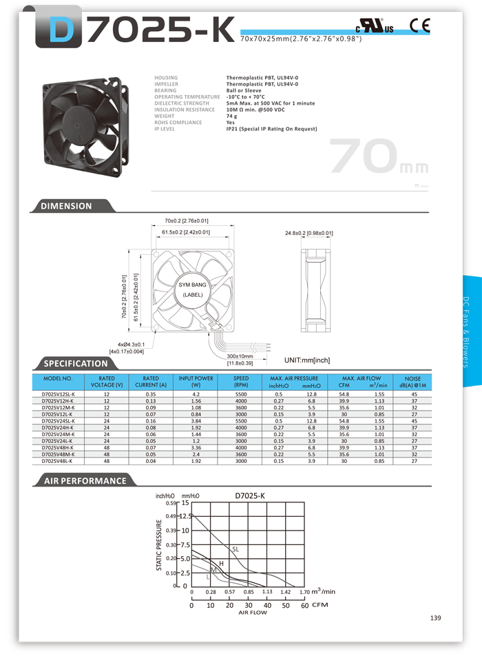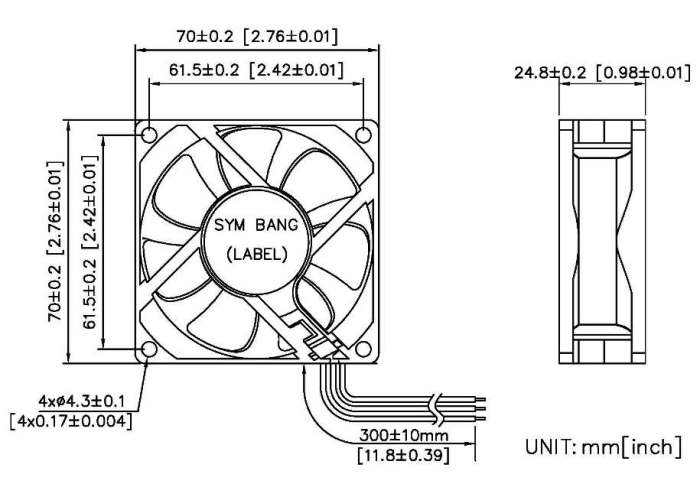 70mm 12V DC Brushless Fan with Plastic Blades 6000 RPM (D7025-K)