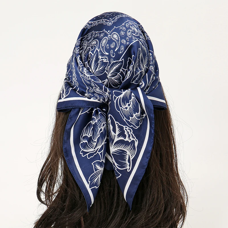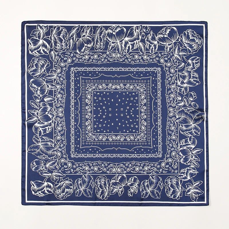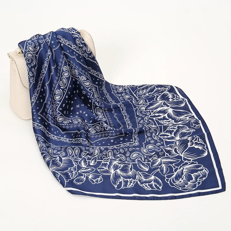 ผ้าพันคอไหมสี่เหลี่ยมขนาด 70x70 ซม. แฟชั่นสำหรับผู้หญิง ผ้าซาตินพิมพ์ลาย สามารถปรับแต่งขนาดและสีได้ ใช้เป็นผ้าคาดผมหรือผ้าคลุมไหล่