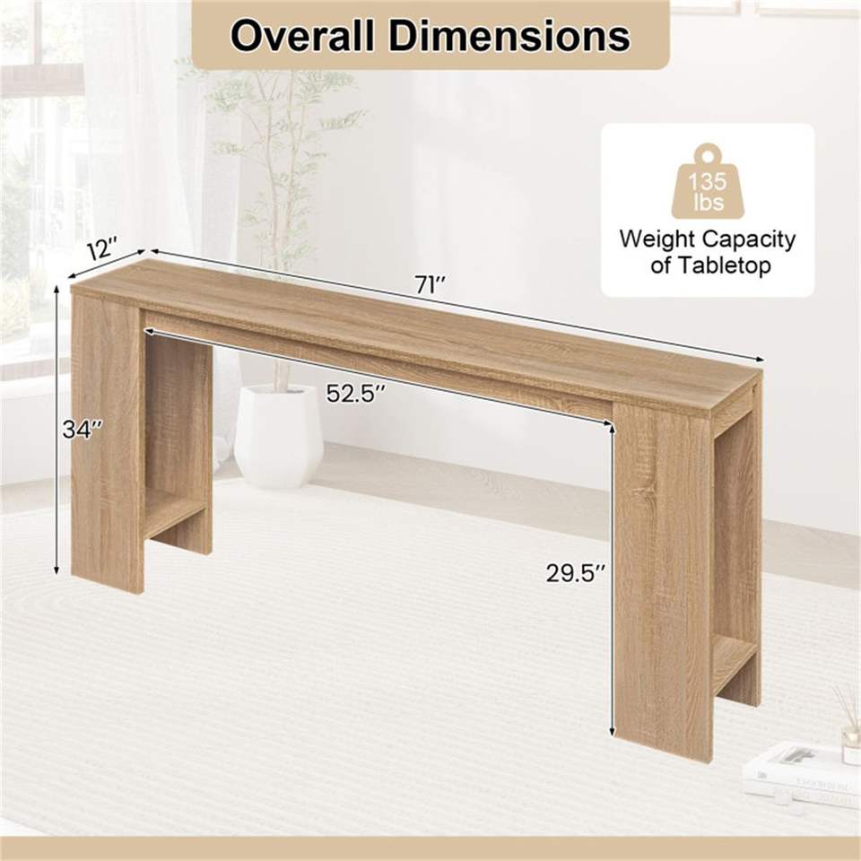 71\" Long Farmhouse Console Table with Bottom Storage Shelf Narrow Entryway Table
