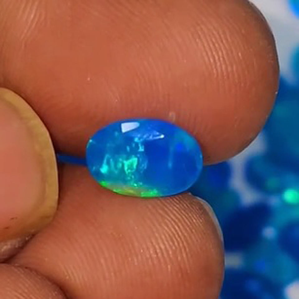 ชื่อสินค้า:โอปอลสีน้ำเงินเอธิโอเปียธรรมชาติ ทรงไข่เหลี่ยมเพชร