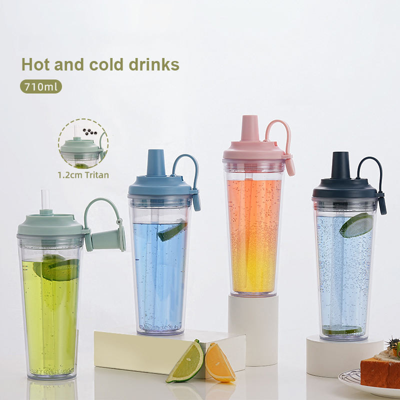 ชื่อผลิตภัณฑ์:ถ้วยพลาสติกสองชั้นขนาด710มล. ถ้วยชานมไข่มุกขนาดใหญ่