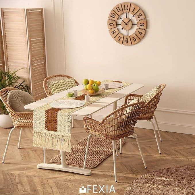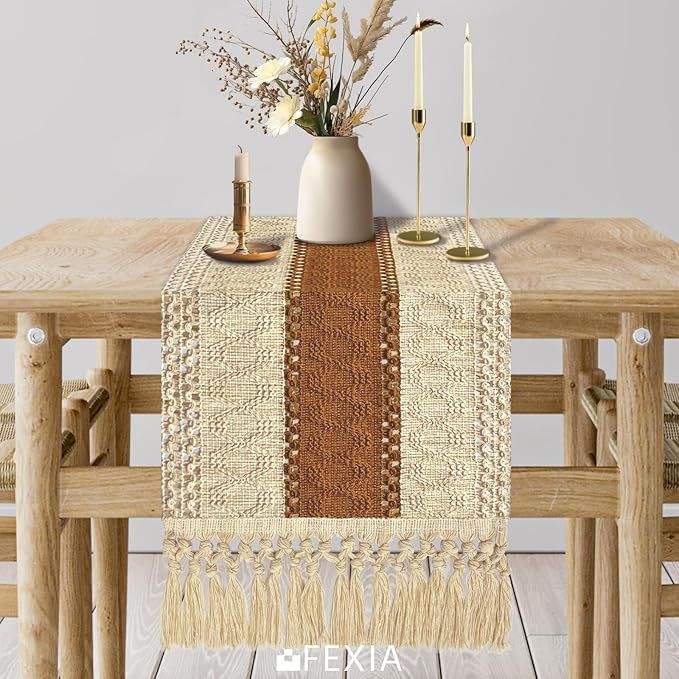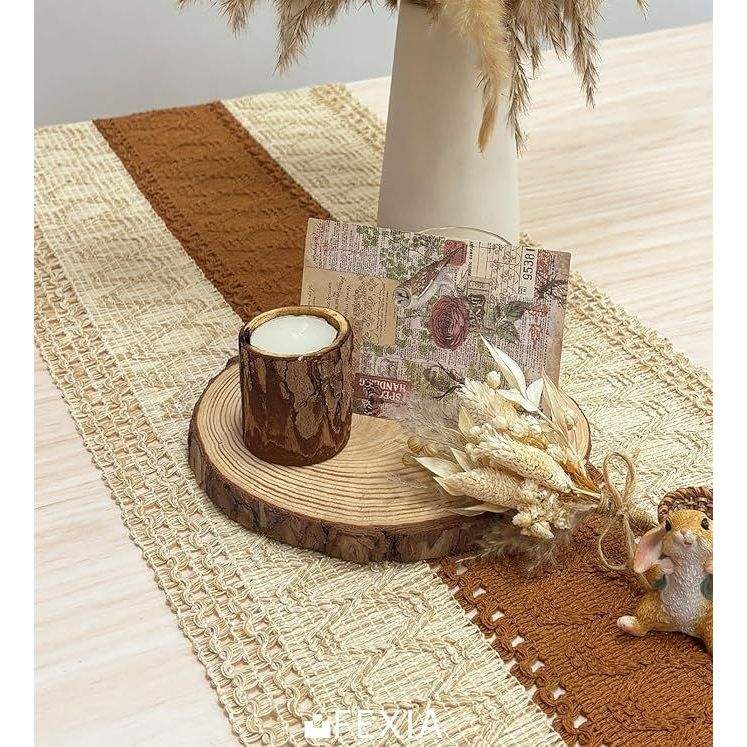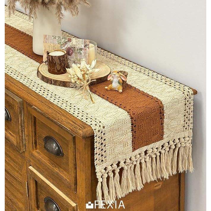 ผ้าปูโต๊ะมาคราเม่สไตล์โบโฮขนาด 72 นิ้ว แบบเรียบง่ายสไตล์บ้านไร่ พร้อมพู่ห้อยสไตล์โบฮีเมียน สำหรับตกแต่งวันขอบคุณพระเจ้าและงานปาร์ตี้