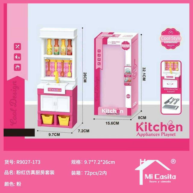 72 Piece Pink Toy Kitchen Set with Lights and Music Kids' Furniture Set