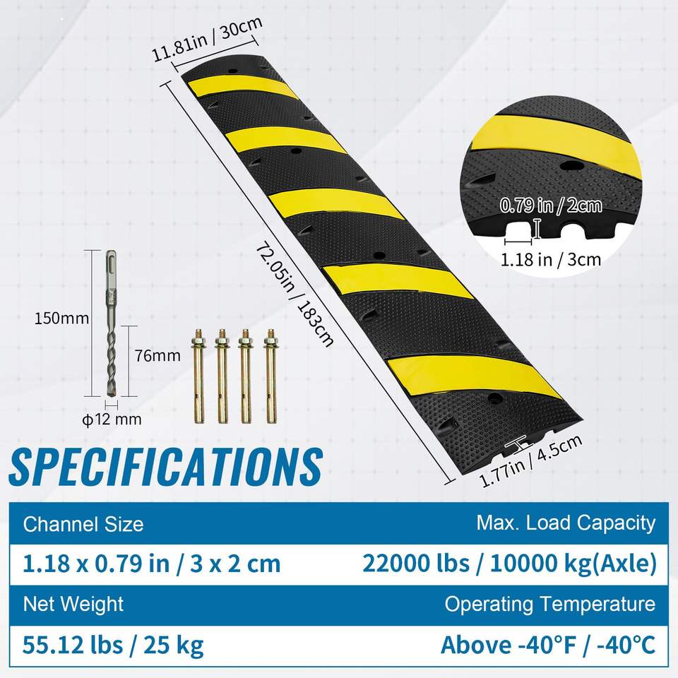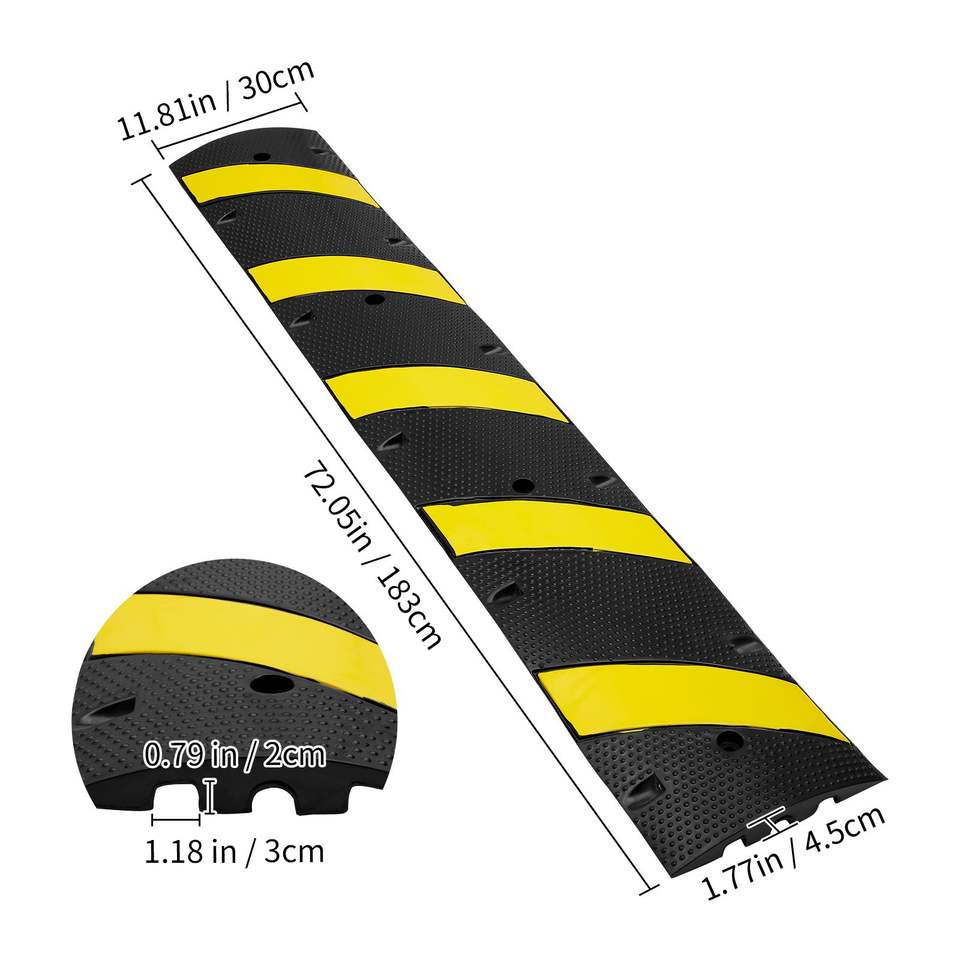 แผ่นยางชะลอความเร็วแบบสองช่อง รับน้ำหนักได้ 22,000 ปอนด์ ทนทาน พร้อมแถบสะท้อนแสงสีเหลืองสดใส