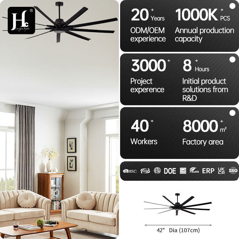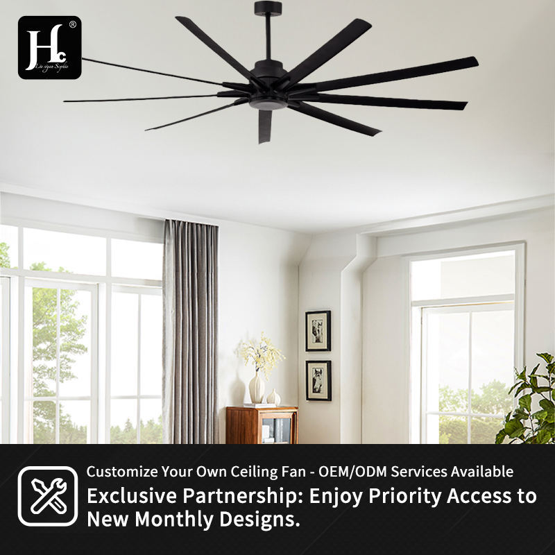 พัดลมเพดานอลูมิเนียมขนาด 72 นิ้ว 9 ใบพัด พร้อมเทคโนโลยีระบายอากาศแบบรีโมท สำหรับใช้งานในอุตสาหกรรม