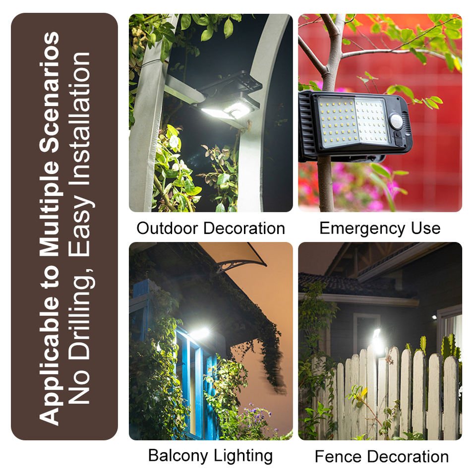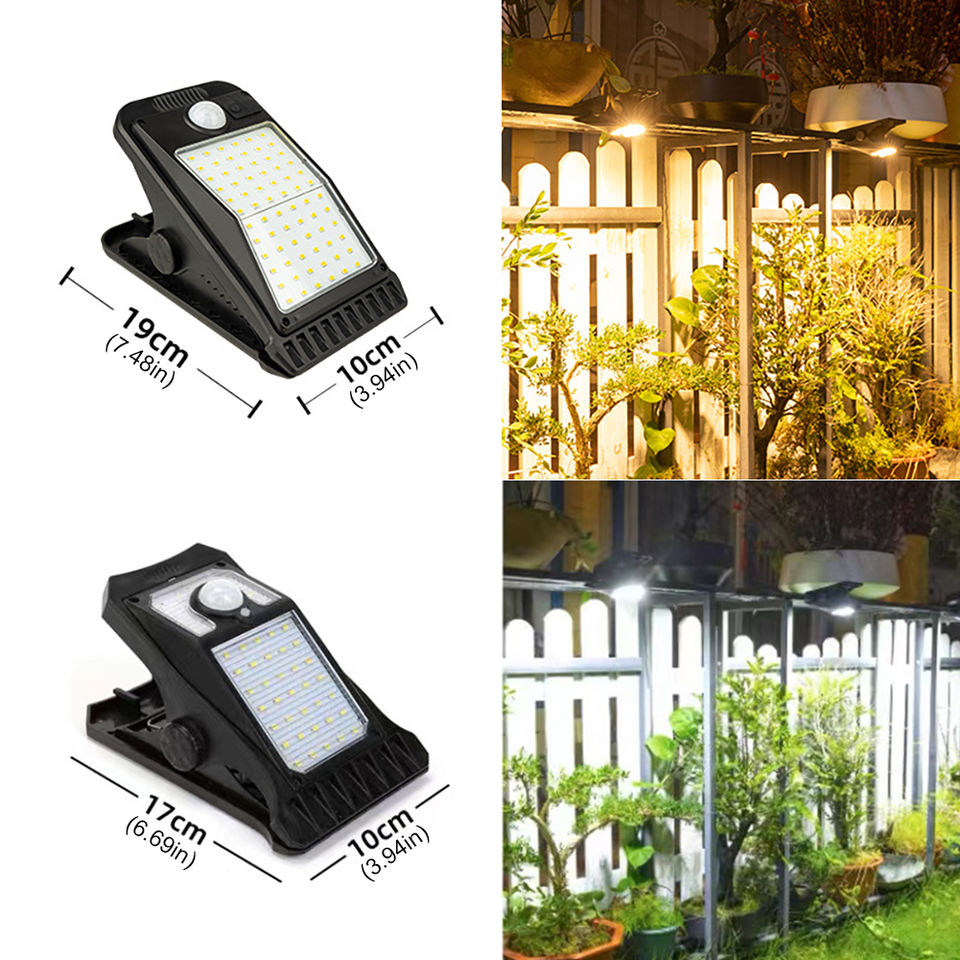 ไฟโซลาร์แบบหนีบ 72LED สำหรับภายนอกอาคาร ไม่ต้องเจาะ ติดตั้งง่าย พร้อมเซ็นเซอร์ตรวจจับความเคลื่อนไหว กันน้ำระดับ IP65 เหมาะสำหรับติดตั้งบนรั้ว ระเบียง ผนัง
