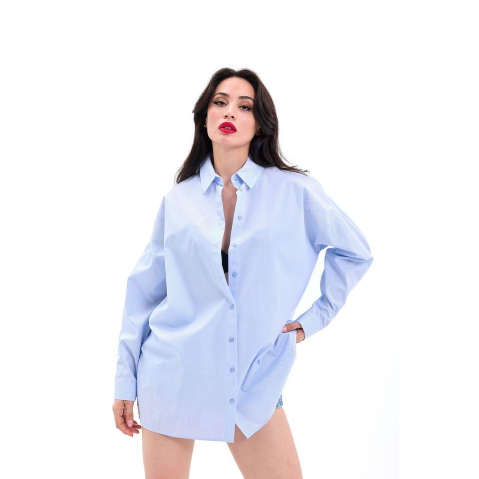 เสื้อเชิ้ตผู้หญิงทรงอสมมาตรผ้าป๊อปลินลายทางมิลาน ติดกระดุม ใส่ได้ทุกวัน รุ่น 7448