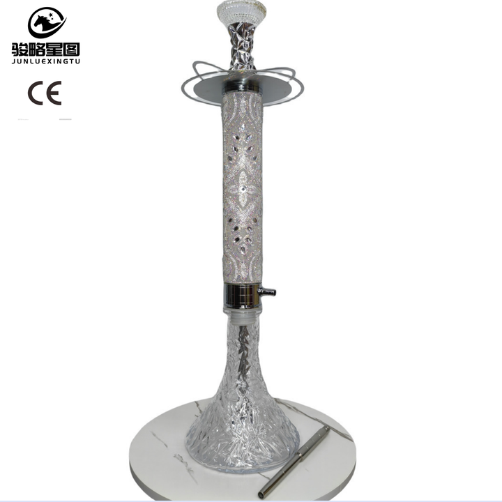 บารากุแบบอาหรับขนาด 74 ซม. ประดับเพชรเต็มตัว บารากุอลูมิเนียมอัลลอยด์คุณภาพสูง ผลิตด้วยมือ ประดับคริสตัล นาร์กีลา ท่อสูบบารากุระดับไฮเอนด์ สำหรับผู้ค้าบารากุชั้นนำ