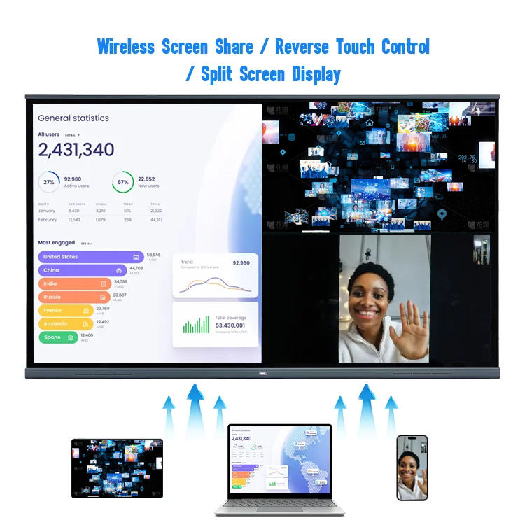 กระดานไวท์บอร์ดอัจฉริยะระบบแอนดรอยด์ 75/98 นิ้ว หน้าจอสัมผัสแบบดิจิทัล จอแบน 4K LCD ทีวีแบบอินเทอร์แอคทีฟ พร้อมปากกา สำหรับการสอนในโรงเรียน