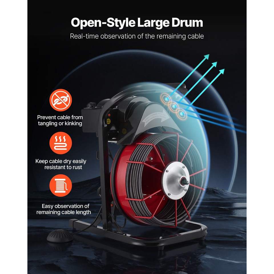 เครื่องมือทำความสะอาดท่อระบายน้ำแบบใช้ลม ขนาด 75 ฟุต x 1/2 นิ้ว พร้อมหัวตัด 4 หัว และสวิตช์เท้าขนาด 2 นิ้ว 6 นิ้ว