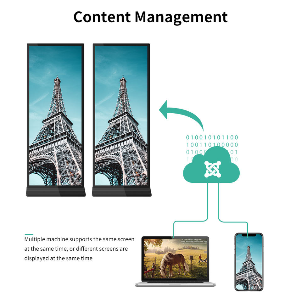 จอแสดงผลดิจิตอล LCD แบบยืดเต็มหน้าจอขนาด 75 นิ้ว แบบตั้งพื้น ความคมชัดสูงพิเศษ พร้อมฟังก์ชันแบ่งหน้าจออัจฉริยะ