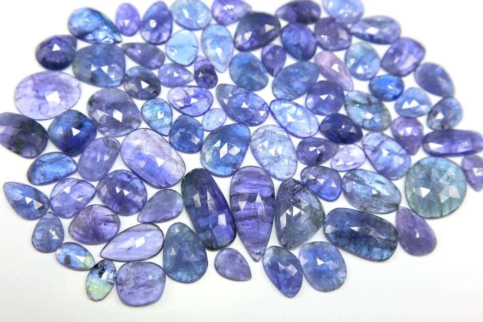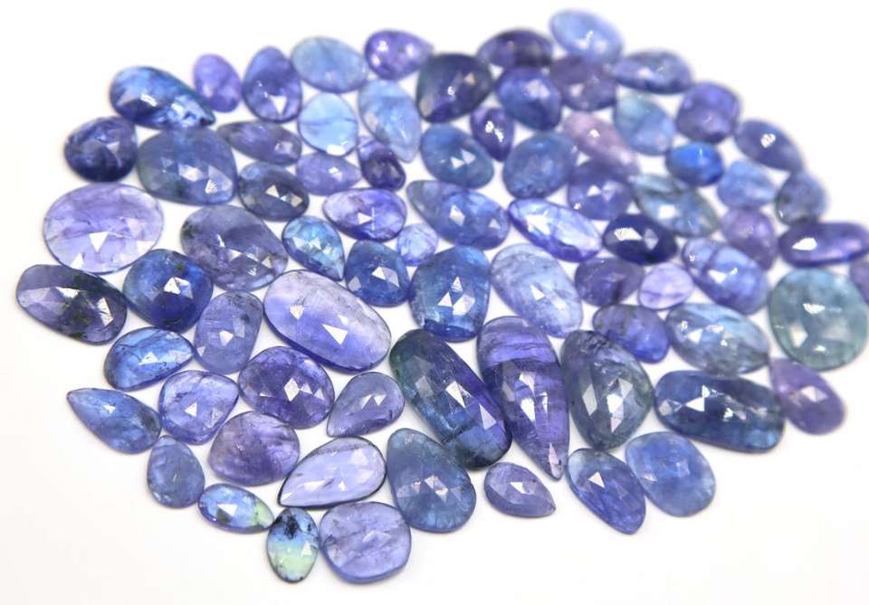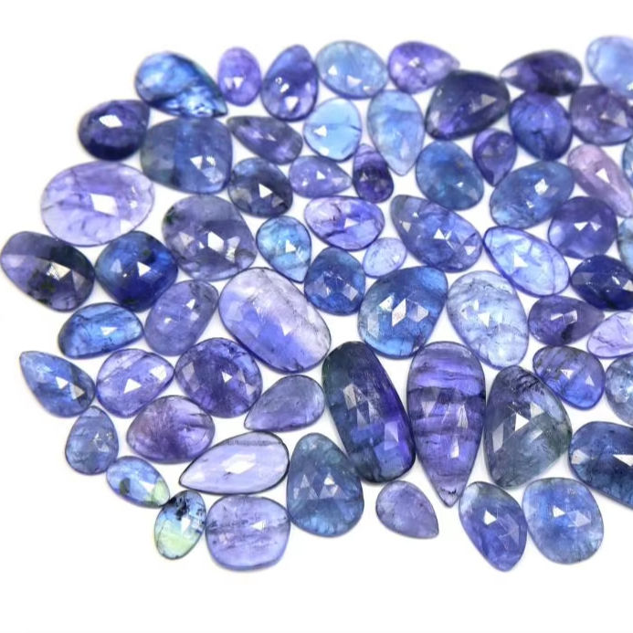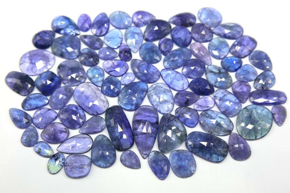 พลอยแทนซาไนท์เจียระไนรูปดอกกุหลาบเจียระไนแบบเจียระไนเพชรเทียม75ชิ้นเครื่องประดับชิ้นธรรมชาติทำอัญมณีหลวม8x6mm-24x11mm 378กะรัต