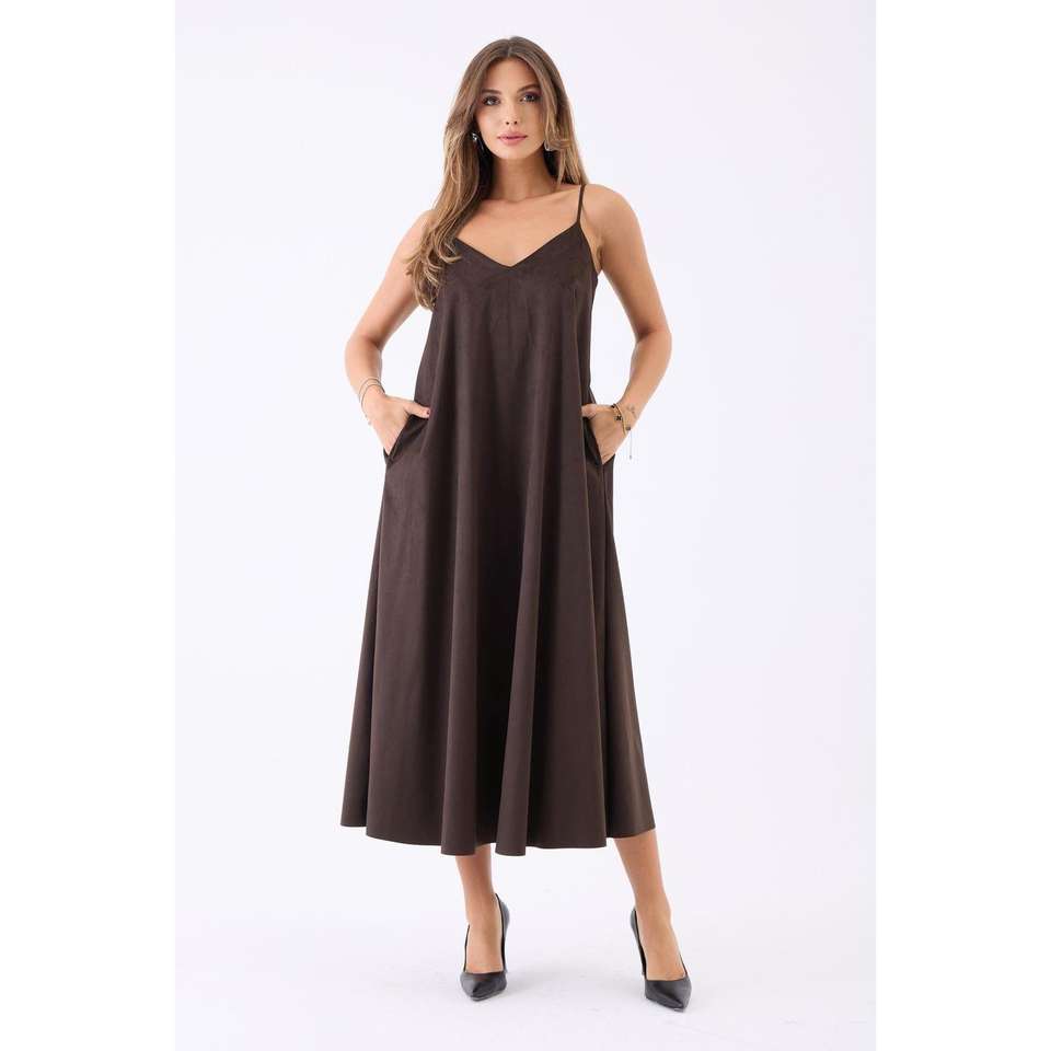 7506 Dress-Coffee Washable with Natural Waistline