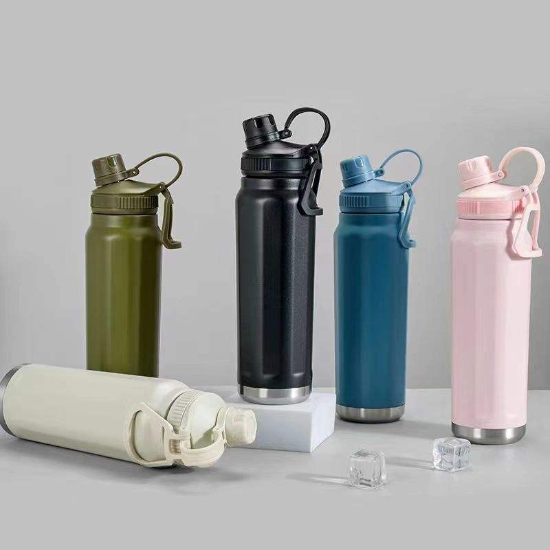 กระติกน้ำสุญญากาศสแตนเลสขนาด 750 มล. พร้อมหูหิ้ว เก็บความร้อนได้นาน 12-24 ชั่วโมง พกพาสะดวกสำหรับกิจกรรมกลางแจ้งและตั้งแคมป์