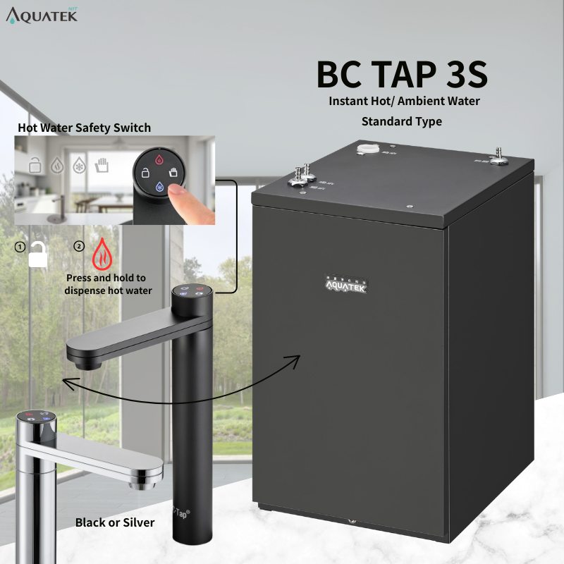 เครื่องจ่ายน้ำใต้ซิงค์ 750W BC TAP 3S น้ำร้อน/น้ำธรรมดา พร้อมระบบกรอง 110-240V วัสดุสแตนเลส สำหรับโรงแรมและบ้าน