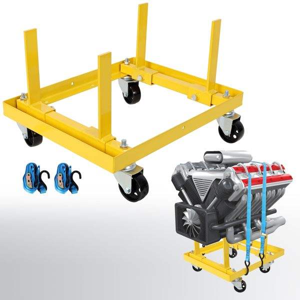 ขาตั้งเครื่องยนต์แบบปรับได้สีเหลือง รับน้ำหนักได้ 750 ปอนด์ พร้อมสายรัดแบบหัวเข็มขัด 2 เส้น ไม่รองรับการยกด้วยตัวเอง ประเภทสินค้า: แม่แรงยกรถ