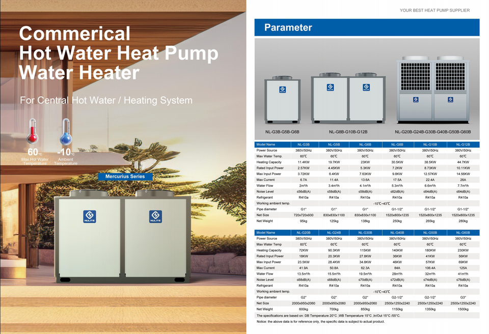 ปั๊มความร้อน 75C Nulite R134A 10 กิโลวัตต์ 50 กิโลวัตต์ 100 กิโลวัตต์ 200 กิโลวัตต์ 230 กิโลวัตต์ ผู้ผลิตปั๊มความร้อน ปั๊มความร้อนไฟฟ้าแบบใช้ลม