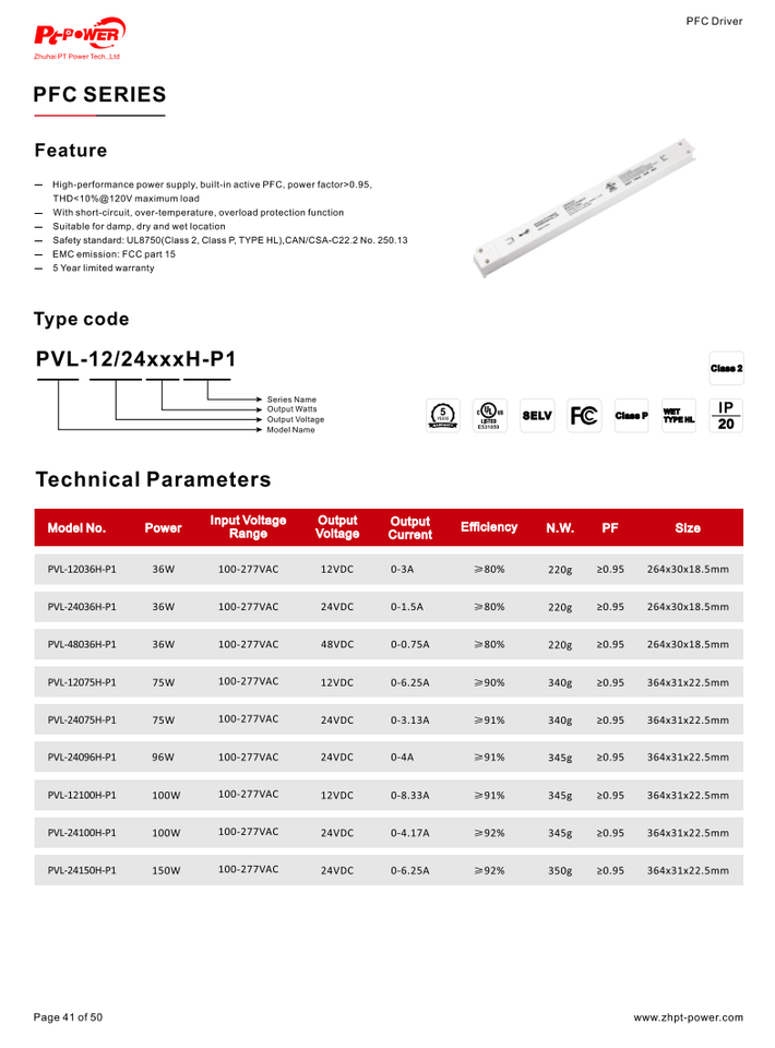 การรับรอง:UL/CUL/FCC/คลาส 2/RoHS