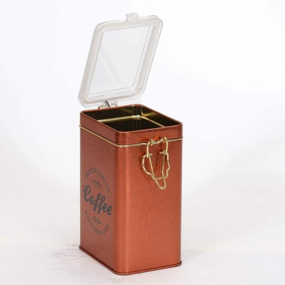 75x100x150 mm Coffee Copper Rectangular Metal Box with 1L Wire Clasp and Transparent Lid Elegant Background