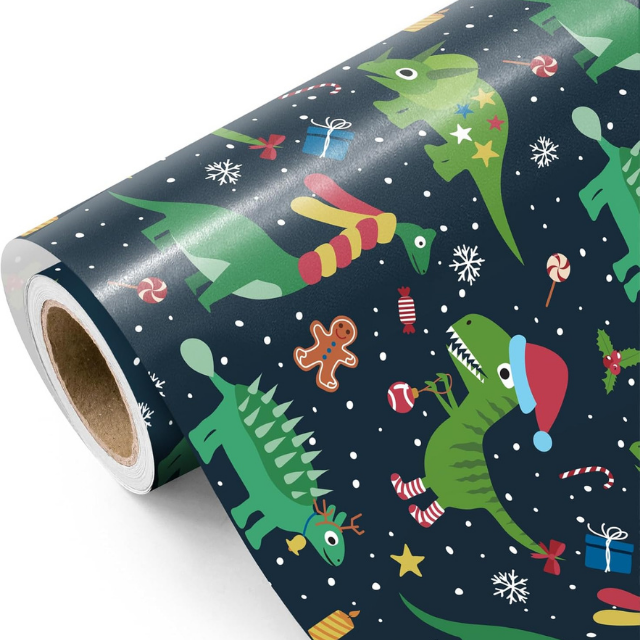 กระดาษห่อลายไดโนเสาร์สำหรับวันเกิดขนาด76.2ซม. x 4.87ม. กระดาษห่อของขวัญวันเกิดงานตามสั่ง