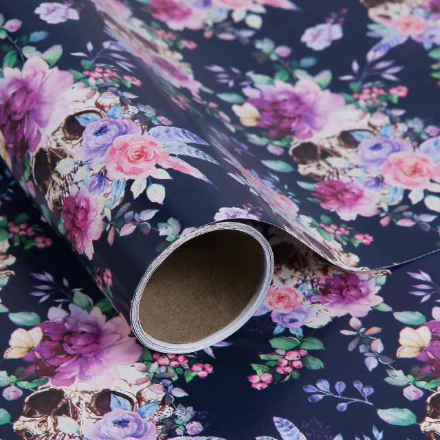 กระดาษห่อช่อดอกไม้สุขสันต์วันคริสต์มาส, ขนาด76.2ซม. x 4.87ม. กระดาษห่อของขวัญลายดอกไม้แวววาว