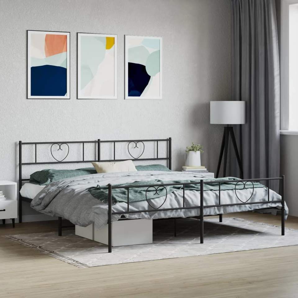 โครงเตียงเหล็กเคลือบผงสีดำขนาด 76 x 80 นิ้ว เตียงโลหะ