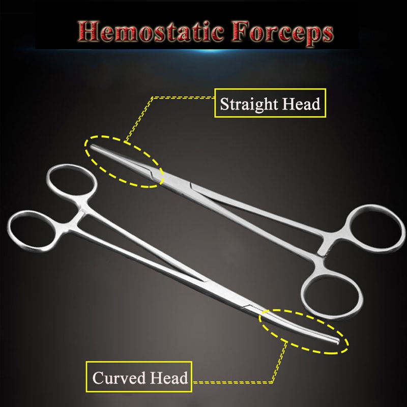 76 x 3.5 x 5 cm Veterinary Surgical Artery Clamp Hemostatic Forceps with Straight & Curved Head, Stainless Steel