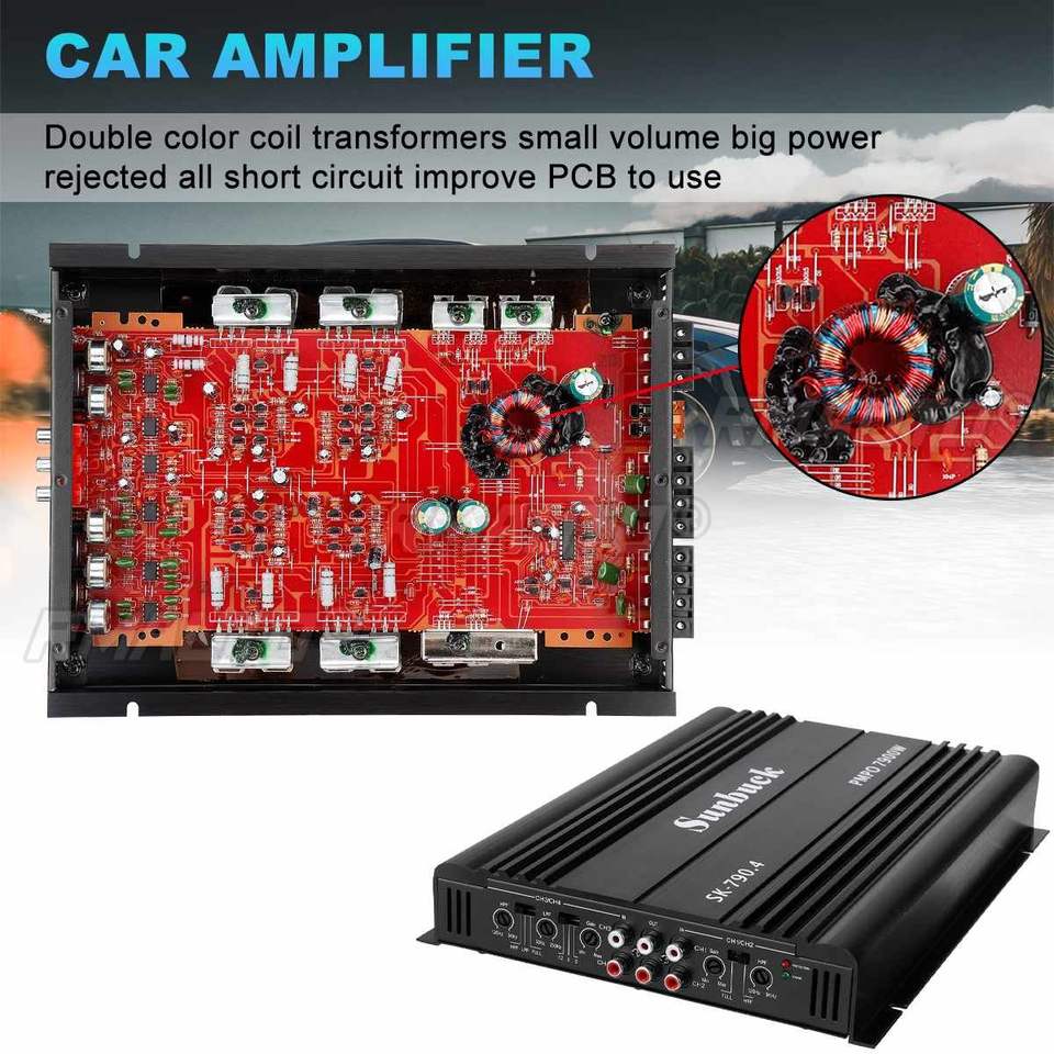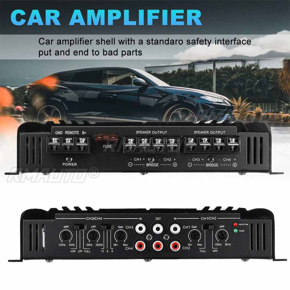 แอมพลิฟายเออร์รถยนต์ 7900W 4 แชนแนล สำหรับลำโพงซับวูฟเฟอร์ เครื่องขยายเสียงรถยนต์ แอมพลิฟายเออร์เบสสำหรับรถยนต์ กล่องลำโพงซับวูฟเฟอร์ ระบบเสียงรถยนต์