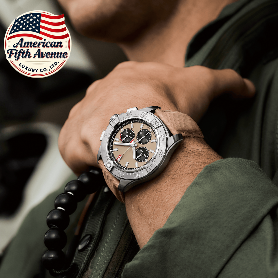 นาฬิกาข้อมือผู้ชายสุดหรู 7A รุ่น Avenger B01 สีกากี ระบบอัตโนมัติ พร้อมเข็มเรืองแสง สายกันน้ำ ปฏิทิน breitlines