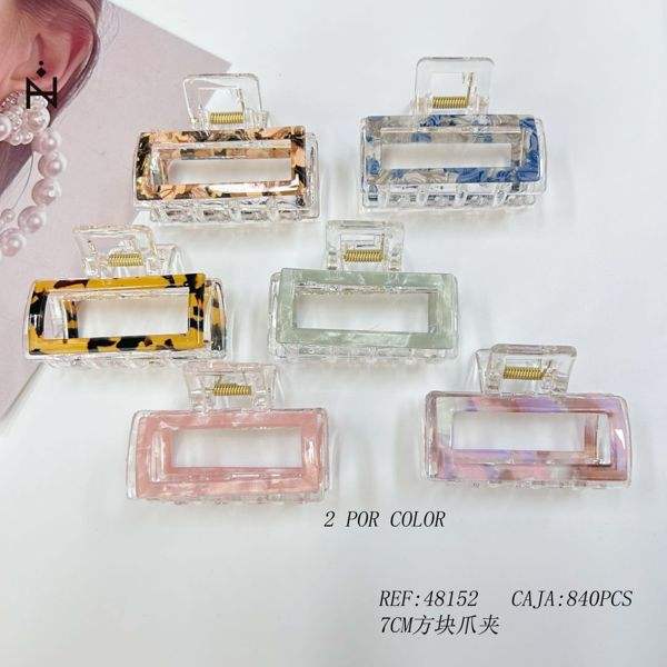 กิ๊บหนีบผมทรงสี่เหลี่ยม 7 ซม. โปร่งใส มีลวดลาย 2 สีต่อสี