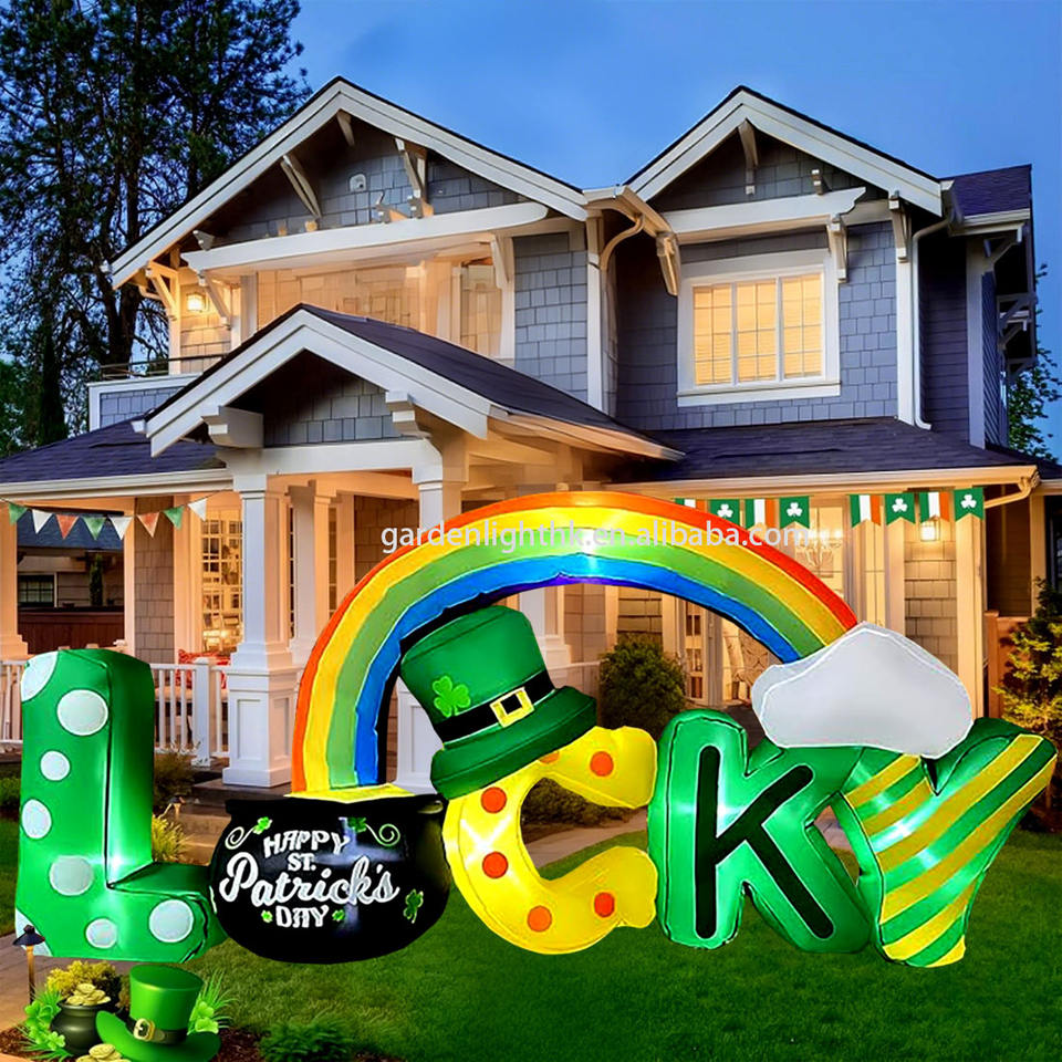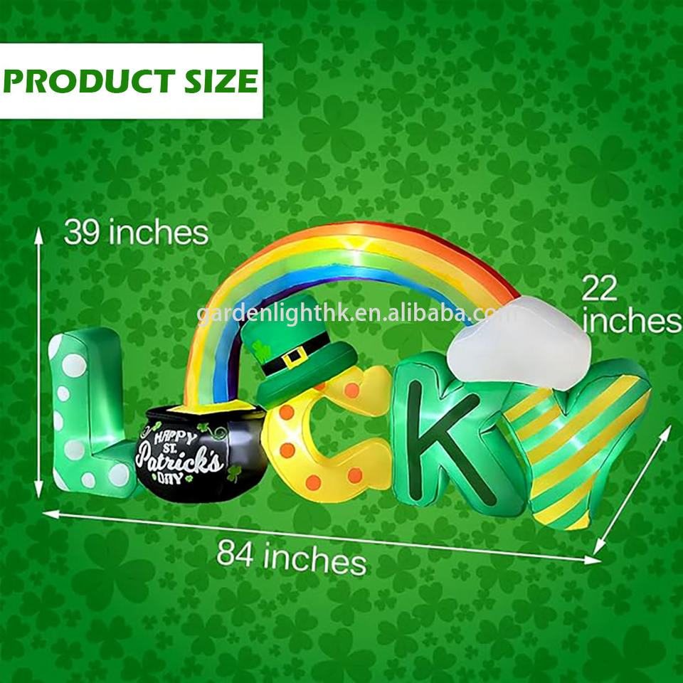 7FT (L) วัน st.patrick พองจดหมายโชคดีที่มีซุ้มประตูสีรุ้ง