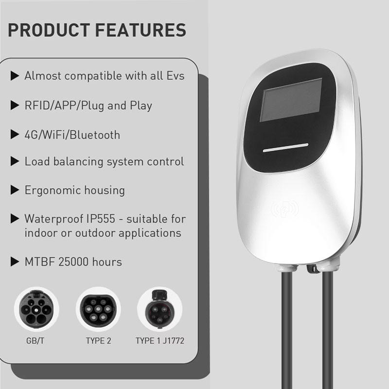 ใหม่ Zswinner 7-21KW ZS-312ไฟฟ้าติดผนัง AC ติดผนัง, IP55ชาร์จ ocpp gbt/Type2/Type1สถานีของ EV