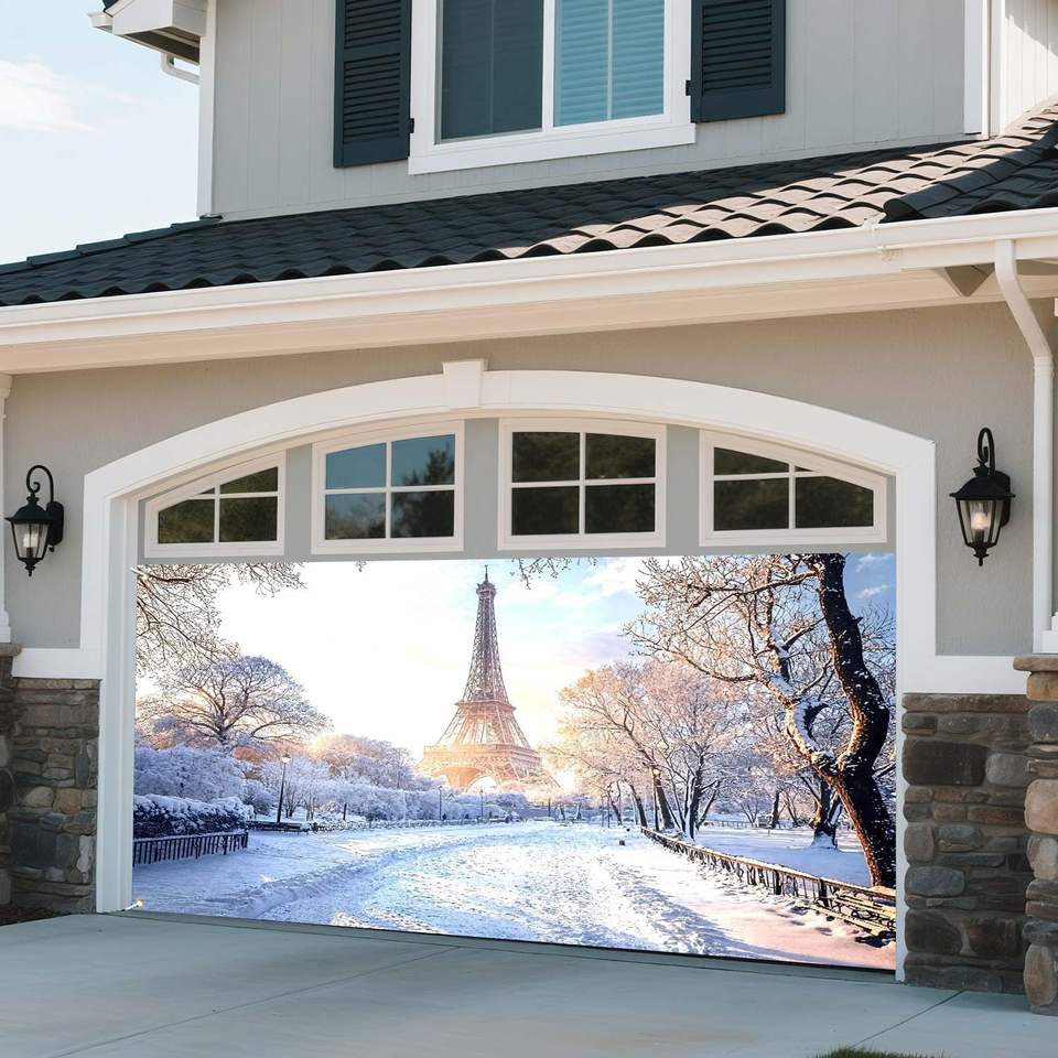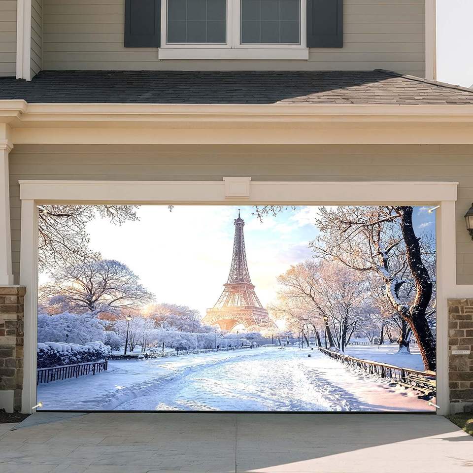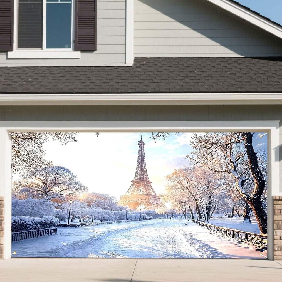 7X16ft Deecabin หลากสีสำหรับตกแต่งงานปาร์ตี้ธีมหอไอเฟลหิมะในฤดูหนาวตามธีมปารีส