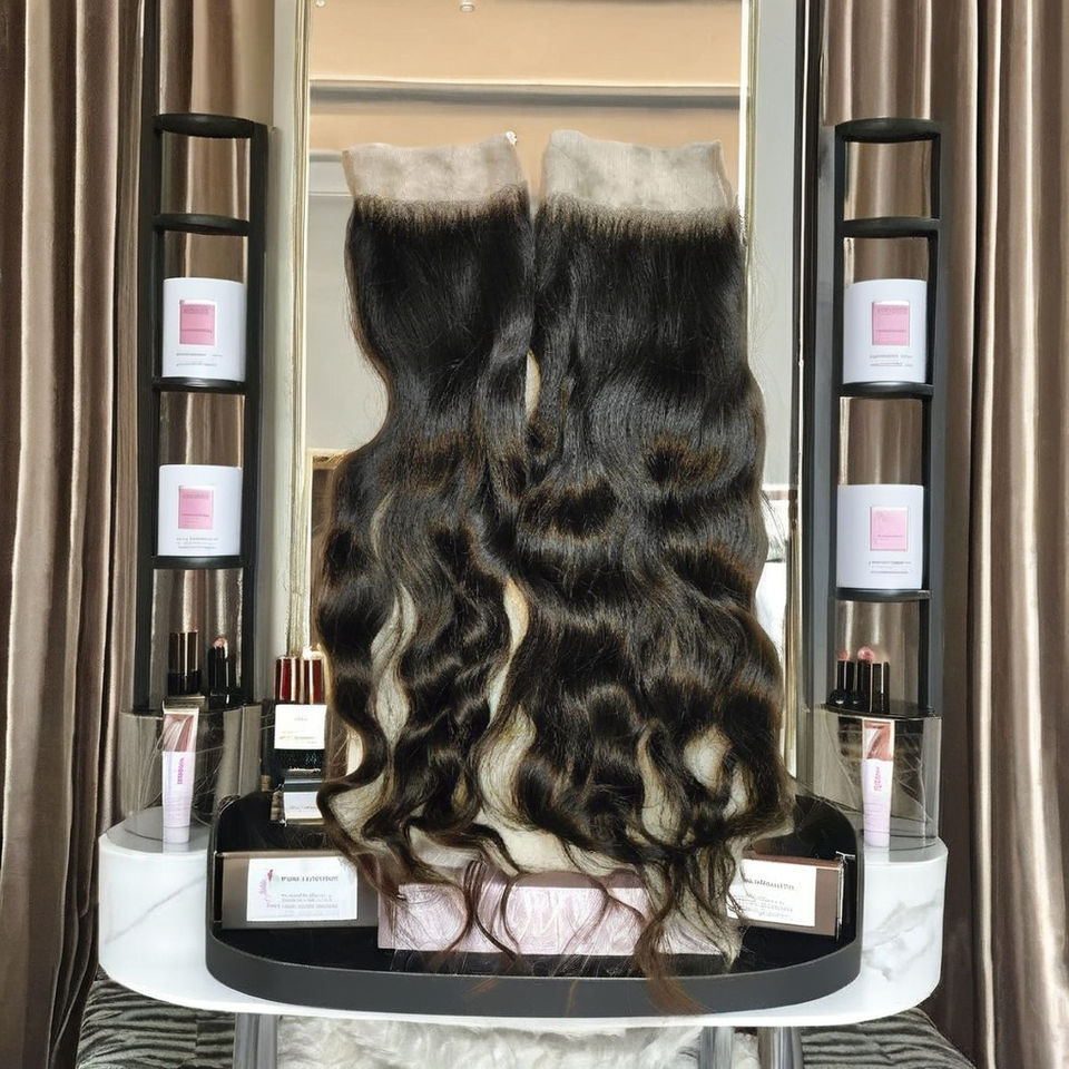 ผมแท้จากอินเดียเรียงตามแนวเส้นผมมนุษย์สำหรับต่อผมผมแท้แบบเรมี่7X7ต่อผมผมลอนแบบหยิกหยักศก